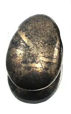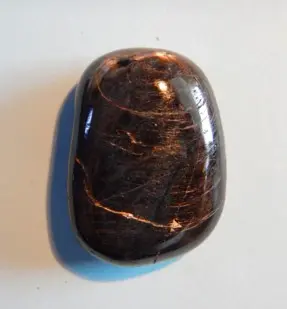 Diese aus schönem Hypersthen gefertigten Steine haben eine tropfenartige Form und wurden oben mit einem gebohrten Loch versehen, womit sie gut als Kettenanhänger, z.B. an einem Lederband getragen werden können. Ihre Größe entspricht etwa 2 - 3 cm und der Durchmesser der Bohrung beträgt etwa 3 mm.