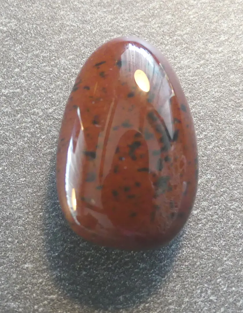 Dieser tropfenförmige Granat Trommelstein hat ein gebohrtes Loch.