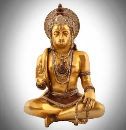 Hanuman Statue aus poliertem Messing sitzend ca. 29 cm