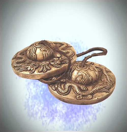 Zimbeln, tibetisch "Chappa", werden besonders von buddhistischen Mönchen während bestimmter Rituale verwendet, sind aber auch aus der schamanischen Tradition bekannt. Durch den Klang der Zimbeln sollen die Götter, welche zuvor von den Trommeln auf die Erde gerufen worden sind, dazu bewegt werden, auf dieser noch ein wenig zu verweilen. Zimbeln können auf verschiedenste Weise angeschlagen werden. Um eine durchdringende Wirkung zu erzielen, werden die Zimbeln im rechten Winkel leicht gegeneinander geschlagen. Ein sanfter, singender Ton entsteht hingegen, wenn man die Zimbeln waagerecht aneinander klingen lässt. Hält man jedoch vor jedes Ohr eine klingende Zimbel, so wird ein Stereo Effekt erzeugt, welcher dem Hörenden das Gefühl vermittelt den kristallklaren Klang mitten im Kopf zu vernehmen. Zimbeln eigenen sich im täglichen Gebrauch hervorragend zur Einstimmung auf die Meditation. Ihr hoher Klang hilft nicht nur die Umgebung und den Alltag zu vergessen, ihre klaren Töne fördern zudem die Harmonisierung des Körpers, da sie beruhigend auf Geist und Seele einwirken. Jedoch sollten Zimbeln keineswegs nur von Meditierenden genutzt werden, ihr Klangwellenspiel erzeugt bei vielen Menschen ein Gefühl der Gelöstheit und der Befreiung. Auf diese Weise wird Entspannen nach einem harten Tag leichter gemacht. Das Klingen der Zimbeln regt zudem die beiden Gehirnhälften des Menschen an und fördert so dessen Kreativität.