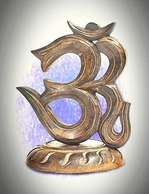 Sehr massive Holzschnitzerei eines indischenOm oder AUM -Zeichen aus Mango Holz.
