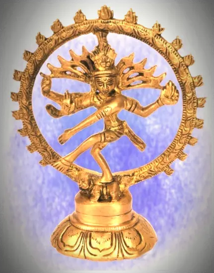 Tanzende Nataraja 14 cm (HxB: 14x11cm) Der Name Shiva bedeuted "der Freundliche" oder "der Gnädige". Er ist die Personifikation des Absoluten, des zerstörenden und erneuernden Prinzips, welches für Tod und Leben zugleich steht. Man sagt, dass Shiva ungefähr 1008 Beinamen hat, welche die verschiedenen Aspekte seines Charakters symbolisieren. Seine dunkle, zerstörerische Seite wird mit dem Namen Urga betitelt, in seiner hellen und freundlichen Nataraja oder Mahayogi.