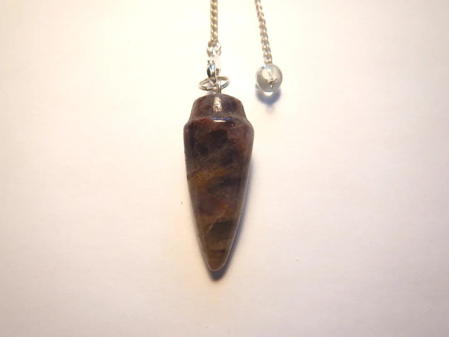 Schön gearbeitete Edelsteinpendel mit abnehmbarer, versilberter Kette ca. 20cm lang im
