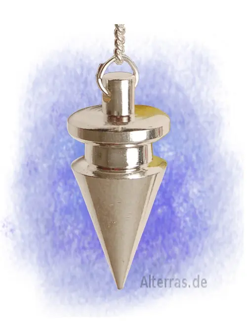 Versilbertes Pendel an 22 cm langer Kette (versilbert) mit Griffkugel.