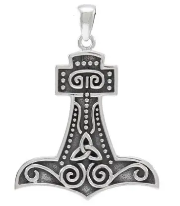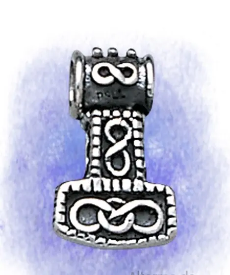 Thors Hammer ist ist der kurzstielige Hammer Mjölnir (Blitz), den er mit Eisenhandschuhen schleudert und der nach jedem Wurf in seine Hand zurückkehrt. Ein Gürtel der Kraft verdoppelt seine Stärke. Höhe: 23 mm Breite: 23 mm Nettogewicht: 2 g Material: 925-Silber Qualität: Marken Qual. Nachbearbeitung: handpoliert