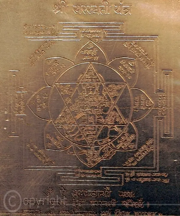 Für Schüler oder auch Erwachsene, die sich bilden und weiterbilden wollen kann ein Saraswati-Yantra in der Nähe oder auf dem Schreibtisch die Gedanken wieder "in Fluss" bringen.